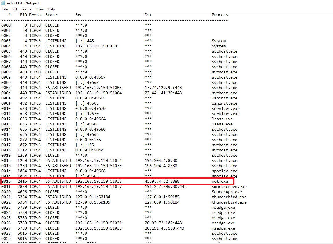 The command-line artifact observed in memory closely matches the threat intelligence report, further validating that the system was communicating with known malicious infrastructure.