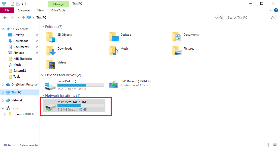 The investigation was conducted using MemProcFS, a memory forensics tool that exposes memory images as a mounted file system, allowing structured navigation of processes, network artifacts, and system objects.