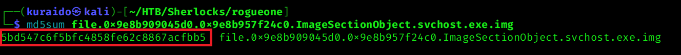 This produced the dumped image file: file.0x9e8b909045d0.0x9e8b957f24c0.ImageSectionObject.svchost.exe.img