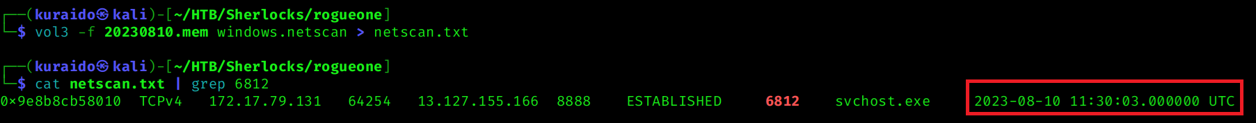 vol3 -f 20230810.mem windows.netscan > netscan1.txt