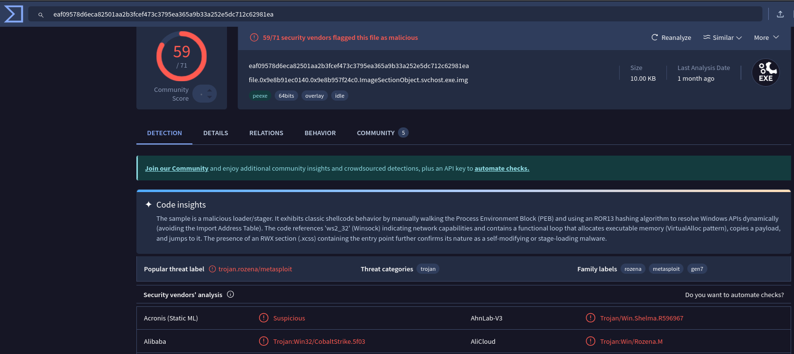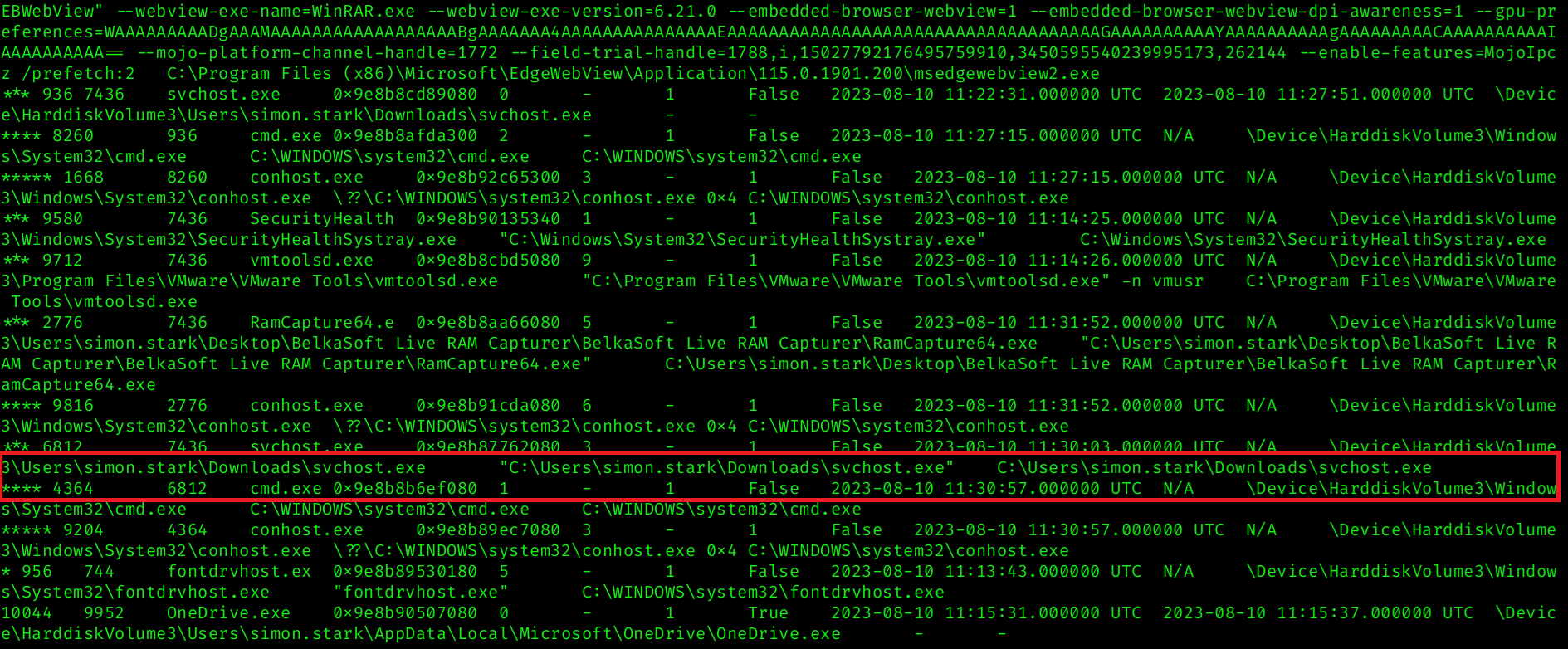 This investigation highlights the effectiveness of memory forensics in uncovering attacker activity that may evade traditional endpoint monitoring tools, especially when malicious processes attempt to masquerade as legitimate system binaries.