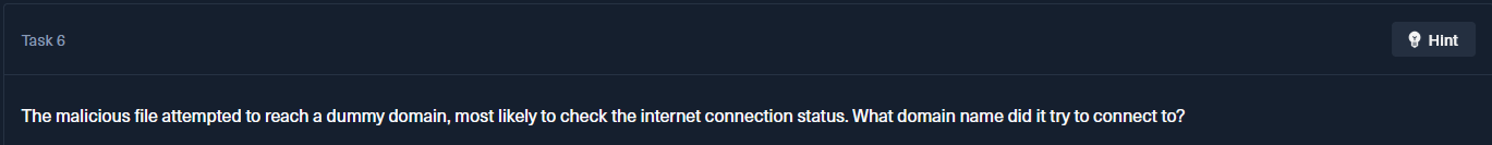 The malicious file attempted to reach a dummy domain, most likely to check the internet connection status. What domain name did it try to connect to?