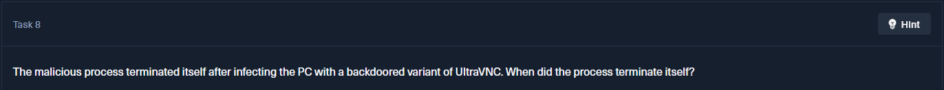 In this Sherlock, you will familiarize yourself with Sysmon logs and various useful EventIDs for identifying and analyzing malicious activities on a Windows system. Palo Alto’s Unit42 recently conducted research on an UltraVNC campaign, wherein attackers utilized a backdoored version of UltraVNC to maintain access to systems. This lab is inspired by that campaign and guides participants through the initial access stage of the campaign.